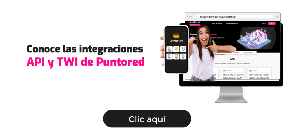 Puntored ha desarrollado diferentes soluciones para la integración de servicios financieros y no financieros en todo tipo de productos; en su portafolio se encuentran integraciones con las billeteras digitales más importantes de Colombia y con empresas retailers con presencia en Latinoamérica.